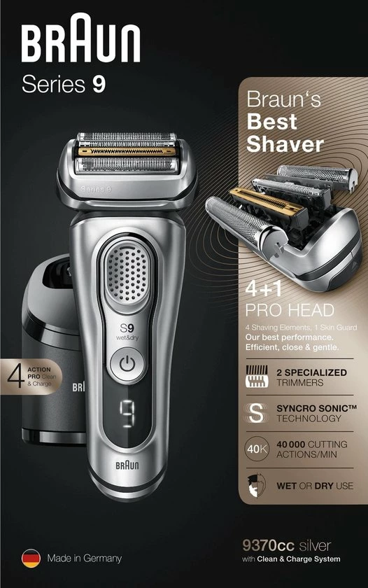 De Braun Series 9 is het meest efficiënte elektrisch scheerapparaat ter wereld. De 5 scheerelementen pakken meer haartjes in één beweging voor een onberispelijke scheerbeurt. Dit scheerapparaat biedt je zowel een gladde als een milde scheerbeurt, zonder iets daartussen. Het elektrisch scheerapparaat glijdt over de huid en is geschikt voor droog of nat scheren. Je kunt nu langer draadloos scheren (60 min) met 20% meer batterij dan de vorige Series 9. Alle Series 9 scheerapparaten worden in Duitsland gemaakt met hoogwaardig vakmanschap. Product aanbevolen door het tijdschrift GQ.