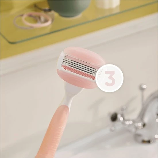 - Huidbescherming: De gelkussentjes op het scheermesje geven een rijke bodybutter met witte thee af om uw huid tegen wondjes, sneetjes en irritatie te beschermen