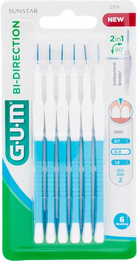 De GUMยฎ Bi-Direction 0.9 is een medium rager in het bi-direction assortiment. De Gum bi-direction heeft een slim ontwerp waarmee je hem in 2 posities kan zetten; 90ยฐ of 180ยฐ. Deze borsteltjes zijn vooral handig om tussen de tanden te reinigen, zowel bij nauwe als bij grotere ruimtes. Ook kun je ze gebruiken bij bruggen, implantaten of orthodontische apparatuur.