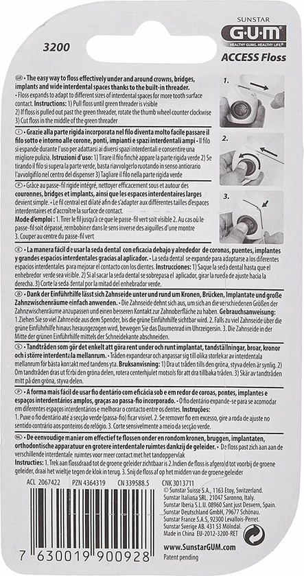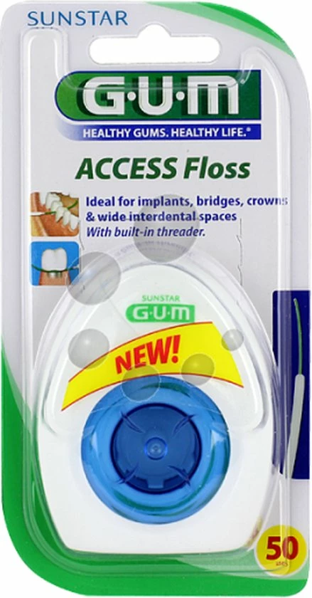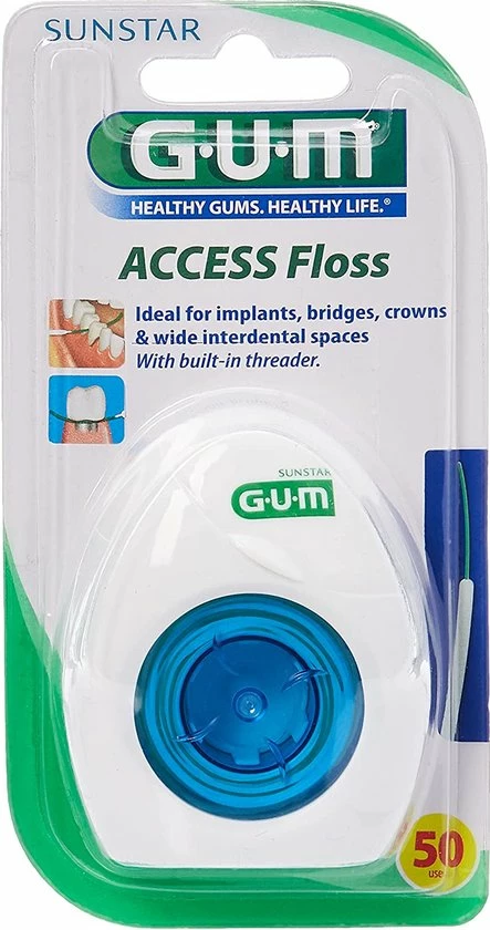 Ideaal voor een zorgvuldige en grondige reiniging van implantaten, bruggen, kronen en brede tussenruimtes. Met de GUM Floss access heb je geen last van verwarring van de draden, ze zijn eenvoudig te verwijderen en je werkt schoon en hygiΓ«nisch per stuk.