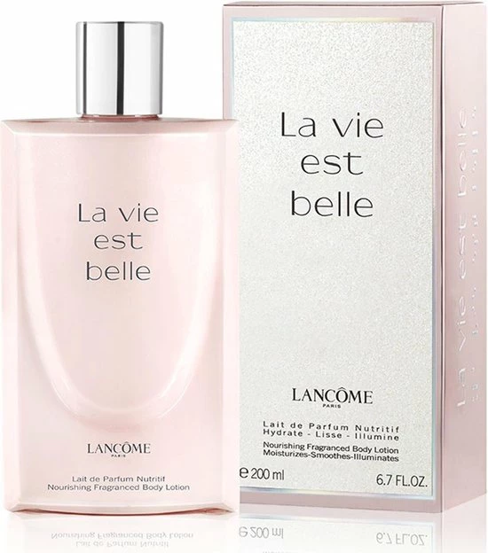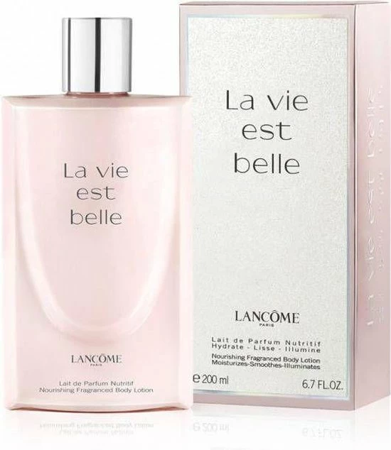LancΓ΄me Bodylotion met de geur van La Vie Est Belle. La Vie est Belle is een geur met de meest zeldzame en zuivere, natuurlijke ingrediΓ«nten, de pure extracten van iris, arabische jasmijn, oranjebloesem vormen de hartnoten, peer en zwarte bes als topnoot geven La Vie est Belle haar zoete geur terwijl patchouli, praline en vanille zorgen voor de diepere basisnoot. Deze geur is exclusief voor LancΓ΄me ontwikkeld door drie toonaangevende Franse parfumeurs.