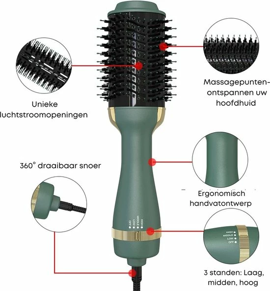 Het is een 3 in 1 haarborstel die droogt en stijlt