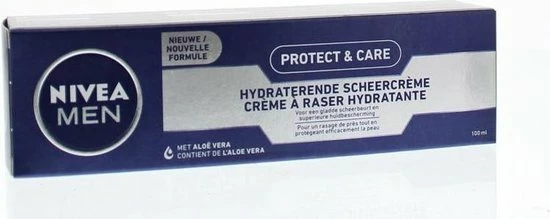 NIVEA MEN Protect & Care Hydraterende Scheercrème zorgt voor een gladde en comfortabele scheerbeurt. De formule met Aloë Vera en Pro-Vitamine B5 verzorgt de huid en beschermt haar tegen uitdrogen.