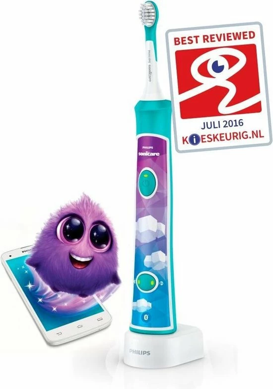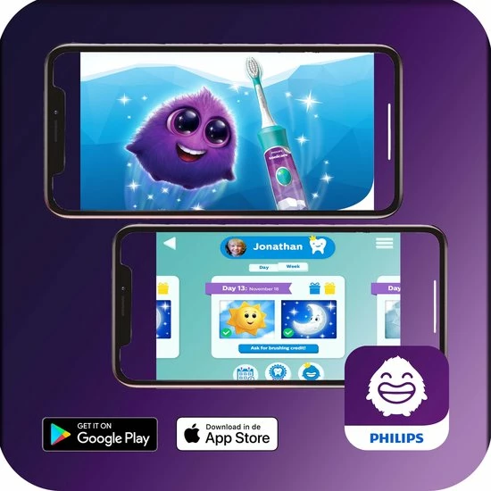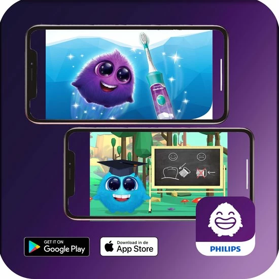 Om een goede tandenpoetsroutine te stimuleren, maakt de Philips Sonicare For Kids elektrische tandenborstel met Bluetooth verbinding met de app, om kinderen te helpen de poetstijd langzaam te verlengen. Het doel is om de door tandartsen aanbevolen twee minuten te bereiken. De kinderen moeten met de app de poetscoach van de app nadoen, die nauwkeurig elk kwadrant van het gebit poetst. De poetscoach moedigt jouw kind aan om steeds langer te poetsen op elk kwadrant. Wanneer jouw kind langer poetst, wordt het beloond door Sparkly, die heel blij is met de superschone tanden. Een leuke training voor levenslang goed poetsen.