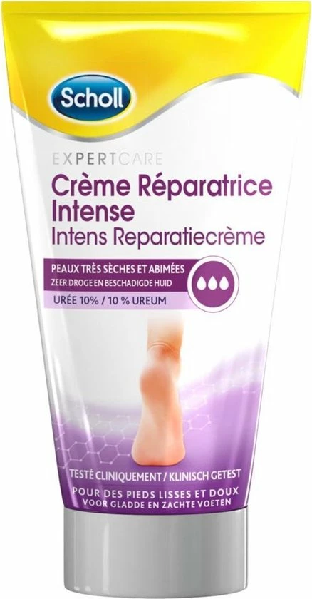 Het gamma van Scholl Crème is speciaal ontwikkeld voor de huid van uw voeten.De voetencreme zorgt voor een gerichte hydratatie van de epidermis. Scholl Expert Care Intens Herstellende voetencrème, op basis van 10% ureum en een vitamine B5 complex, is klinisch getest voor gladde en zachte voeten. Verhoogt het vochtgehalte om de zeer droge en ruwe huid te verzachten. Bij regelmatig gebruik helpt de voetcreme de vorming van een harde huid te voorkomen en blijft de huid glad en beschermd.