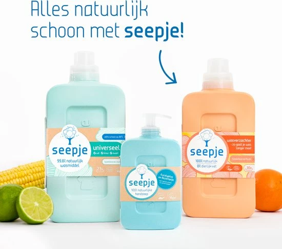 Seepje is ‘n sociale onderneming in duurzame was- en poetsmiddelen. We gaan voor goed Γ©n goed. Het doet wat ‘t moet doen Γ©n is goed voor de wereld. Want schoon is pas Γ©cht schoon als je voor duurzame ingrediΓ«nten kiest.
