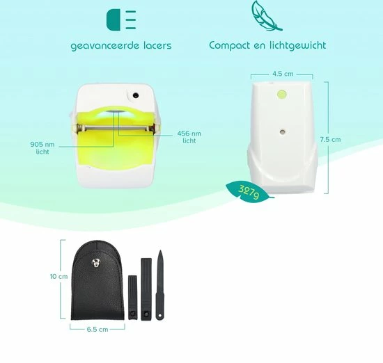 β’Het apparaatje is klein en licht van gewicht en daardoor ideaal om mee op reis te nemen. Zo kunt je ten allen tijde de schimmelnagel behandeling voortzetten.