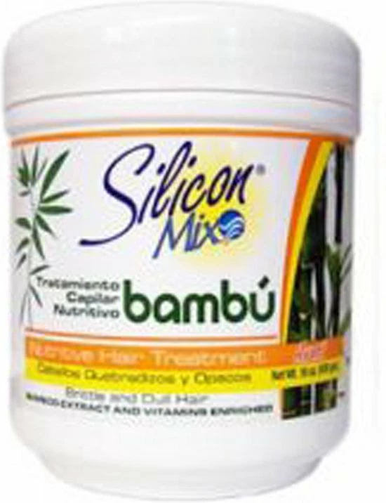 Silicon Mix Bambu Nutritive Hair Treatment bevat bamboe-extract, een natuurlijk product om het haar te regenereren en voeden. Siliconen maakt het haar glad en geeft glans. Voorkomt haarbreuk en gespleten haarpunten. Bevat vitamine A, E, F, H (biotine), H Pro-Vitamine B5 (panthenol), H8 (Inositol) en Paardenkastanje Extract voor het verbeteren van de gezondheid en de schoonheid van het haar, waardoor het haar sneller groeit. Haar behandeling voor het herstellen van de gezondheid, glans en de zachtheid van droog, beschadigd en zwak haar.