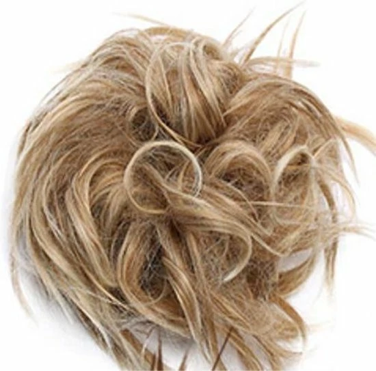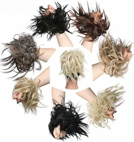 Helemaal Hot: deze Half lange Curl Wrap geeft je gelijk een mooie of juist een rommelige look makkelijk aan te brengen: maak een knotje hoog op je achterhoofd en draai deze curl eromheen door het elastiek blijft het de hele dag perfect zitten.