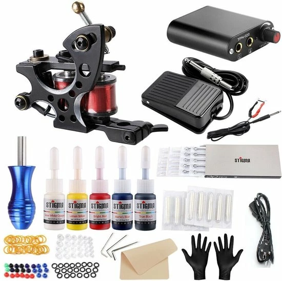 Complete tattoo set waarmee je direct kunt beginnen met het zetten van kleurrijke tatoeages.
