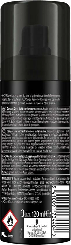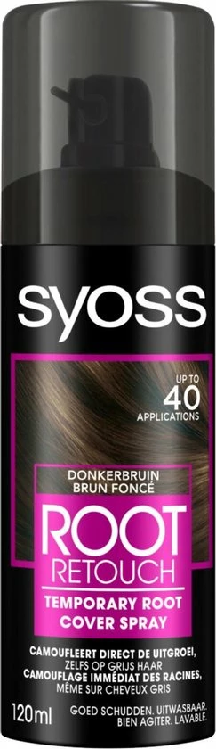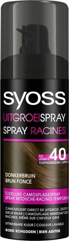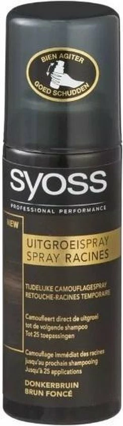 De SYOSS Uitgroeispray camoufleert tijdelijk uitgroei in slechts enkele seconden dankzij minerale kleurpigmenten. Droogt onmiddelijk en wast uit met de volgende wasbeurt. Deze nuance is geschikt voor alle bruine tot donkerbruine kleuren.